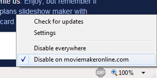 Vous pouvez télécharger le bloqueur via ce lien. Une fois l’installation terminée et lorsque vous vous rendez sur moviemakeronline.com, une fenêtre s’affichera pour vous inviter à désactiver l’extension sur le site. Tout se fait de manière similaire aux navigateurs précédents :